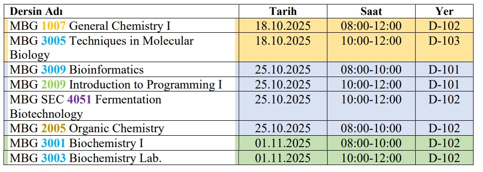 FEF- MBG Öğrencilerinin Dikkatine! Güncel Telafi Programı