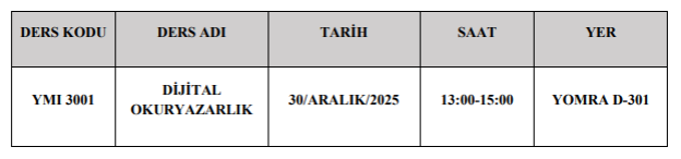 Dr. Öğr. Üyesi Selfiye ÖZKAN’ın YMI 3001 Dijital Okuryazarlık Dersini Alan Öğrencilerimizin Dikkatine