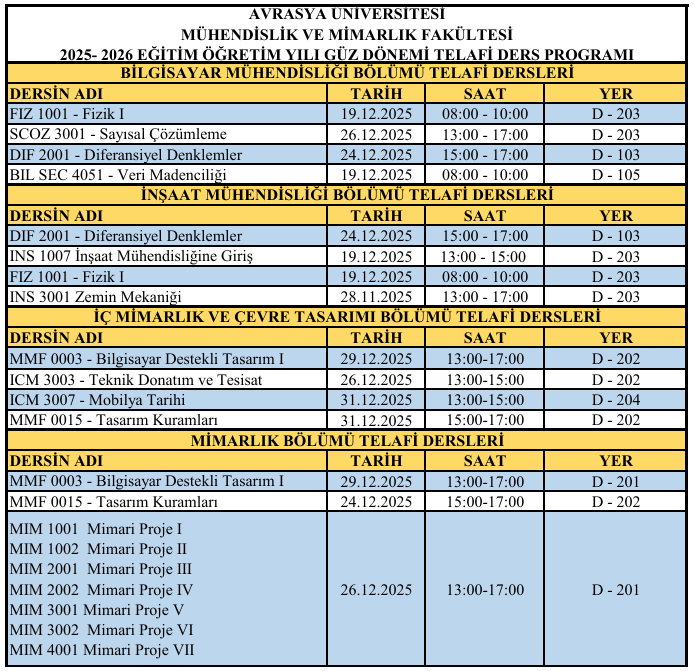 MMF – 1 Ocak Telafi Programı (Güncel)