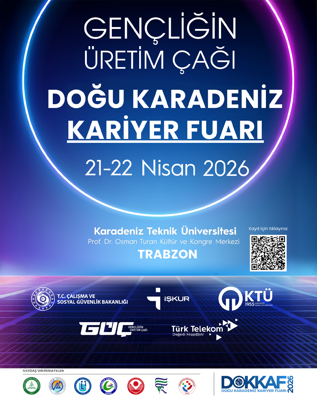 Bölgesel Kariyer Fuarları Nedir? Üniversiteler, kamu kurumları, özel sektör temsilcileri ve meslek odalarının iş birliği ile gerçekleştirilen; bölgesel kalkınmaya ve istihdama doğrudan katkı sağlayan geniş kapsamlı kariyer etkinlikleridir. Bu fuarlar, iş gücü piyasasının tüm aktörlerini tek bir çatı altında buluşturarak bölgenin istihdam potansiyelini harekete geçirmeyi amaçlar. Doğu Karadeniz Kariyer Fuarı (DOKKAF'26) Nedir? Karadeniz Teknik Üniversitesi […]