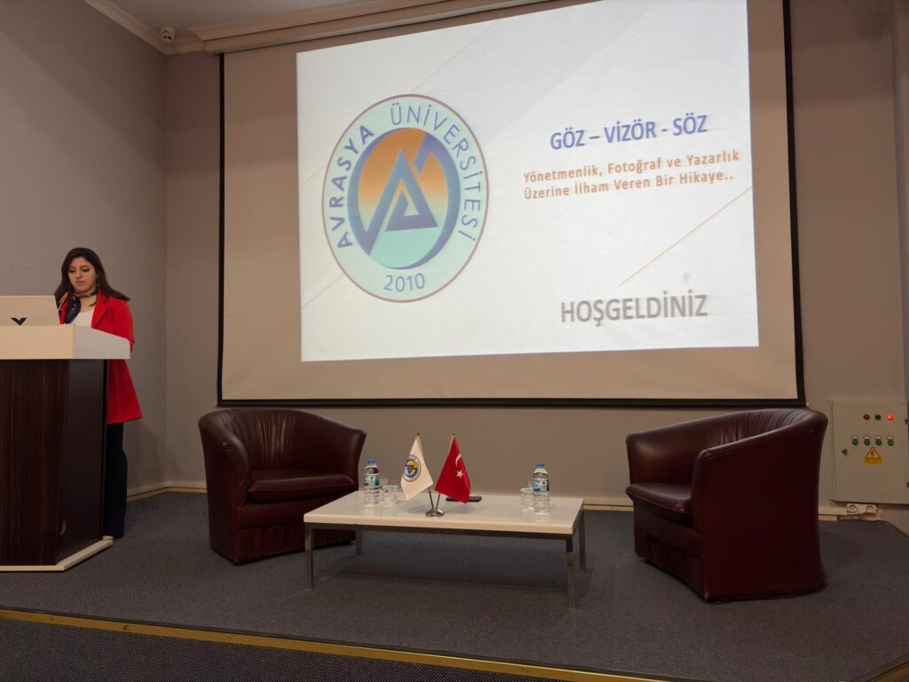 Halkla İlişkiler ve Tanıtım Programı tarafından düzenlenen “Göz, Vizör, Söz: Yönetmenlik, Fotoğraf ve Yazarlık Üzerine İlham Veren Bir Hikâye” başlıklı söyleşi, Avrasya Üniversitesi Konferans Salonu’nda gerçekleştirildi.